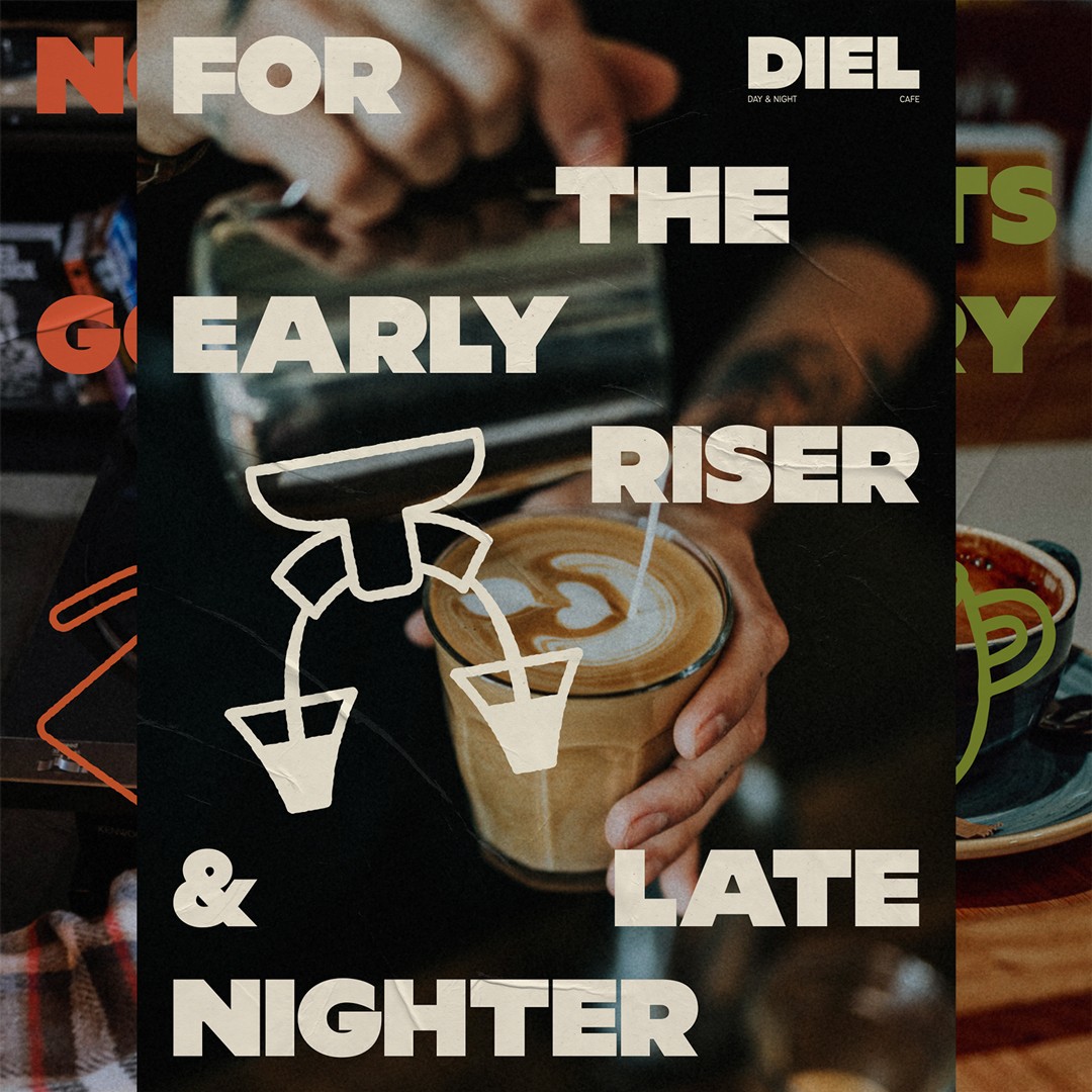 Diel Cafe is a conceptual, independent cafe dedicated to serving affordable, high-quality speciality coffee and creating a communal space for Millennials and Gen Z throughout the day and night.